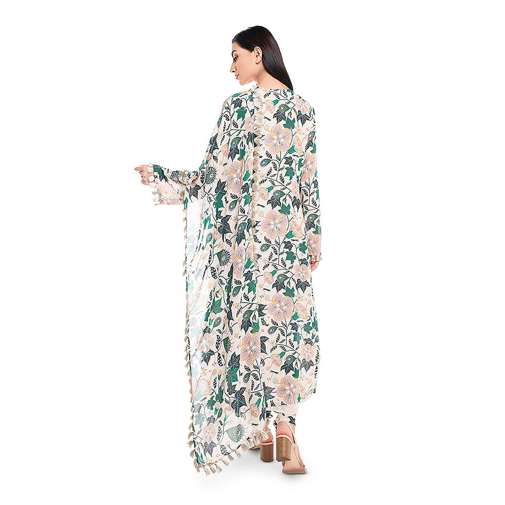 White Printed Georgette Kurat with Churidar & Dupatta (Set of 3)