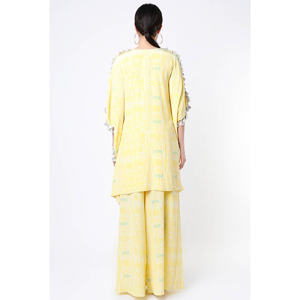 Payal Singhal Yellow Embroidered Short Kaftan with Palazzo (Set of 2)
