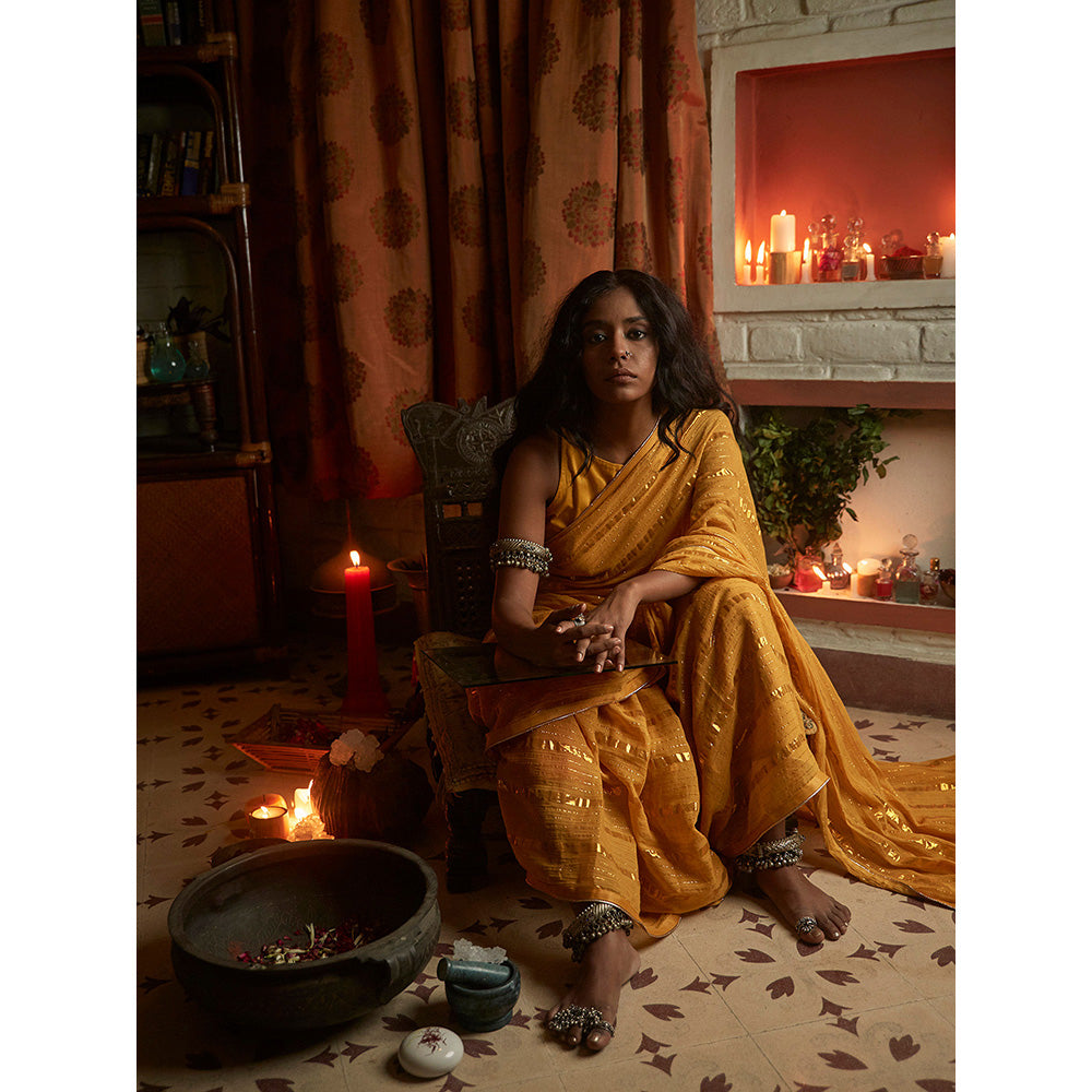 Description : This saree takes homage from Indian rituals and traditions and hence is perfect for any ethnic occasions. It has been tailored to intricate perfection and its delicate details make sure you're always making heads turn. Wear this with heavy jewellery and a matching bindi to make a regal statement.