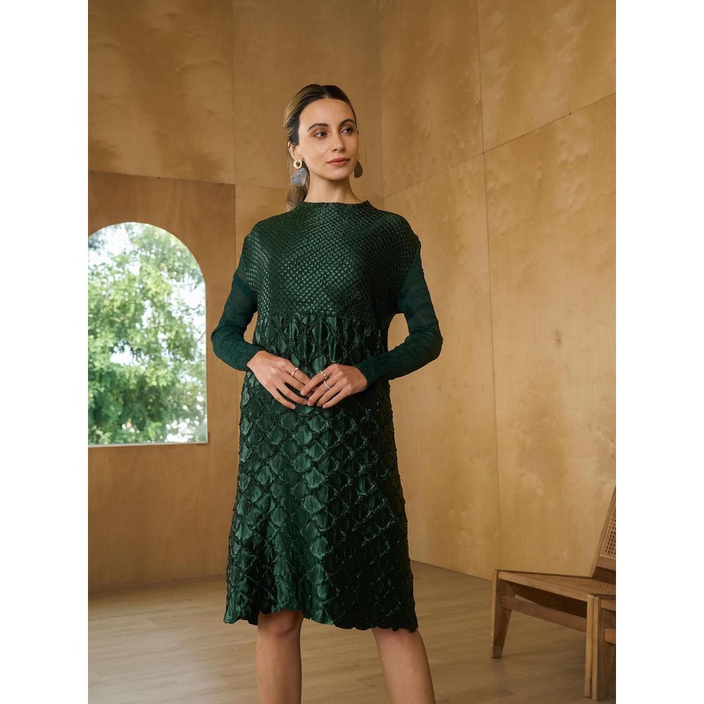 Pleats by Aruni Bottle Green Mermaid Textured Dress