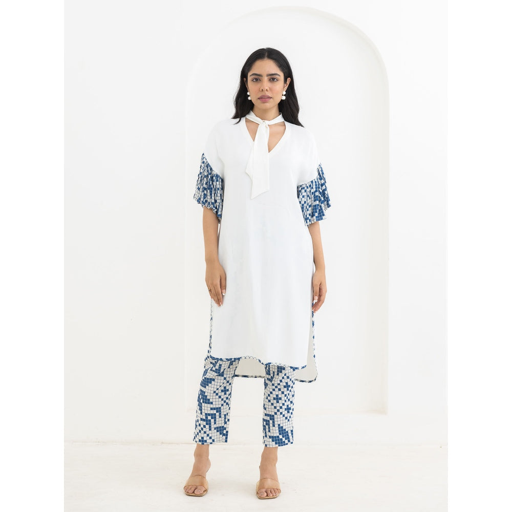 Description : White Frill Kurta Co-Ord - A Serene Kurta Combined With Custom Print Cigarette Pant