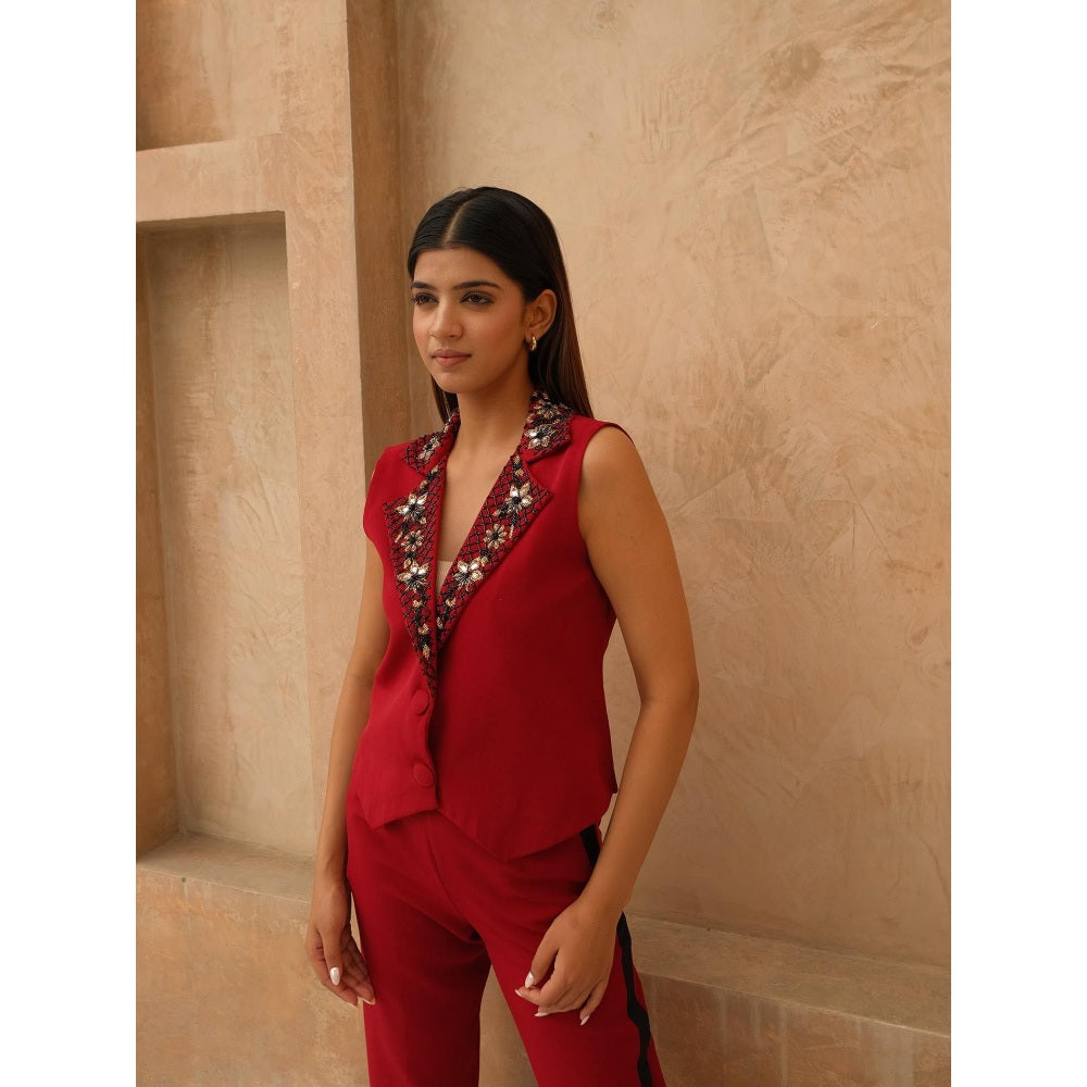 Rabnoor K Sethi Red Embellished Waist Coat with Pant (Set of 2)