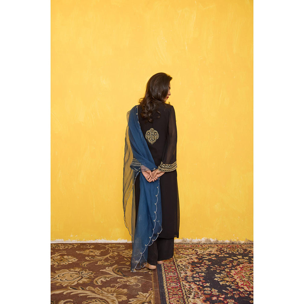 Radha Sharma Georgette Gold and Pearl Handwork Kurta with Palazzo and Dupatta (Set of 3)