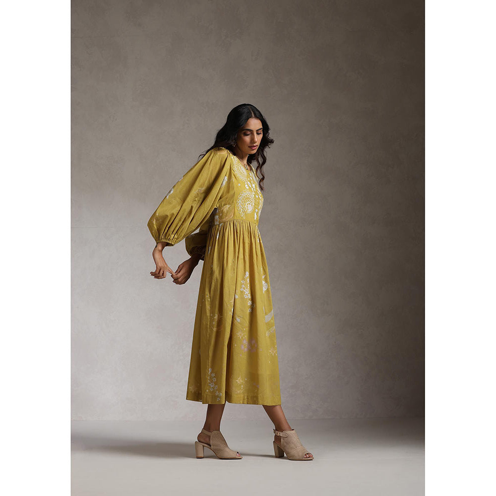 Description : The Dress Is Crafted Out Of Cotton Mul and Comes In An Anti-Fit Silhouette. It Has An Elasticated Back Waist That Adds A Feminine Touch To The Style and Some Extra Comfort. The Hand Embroidery On The Yoke Is The Highlight.