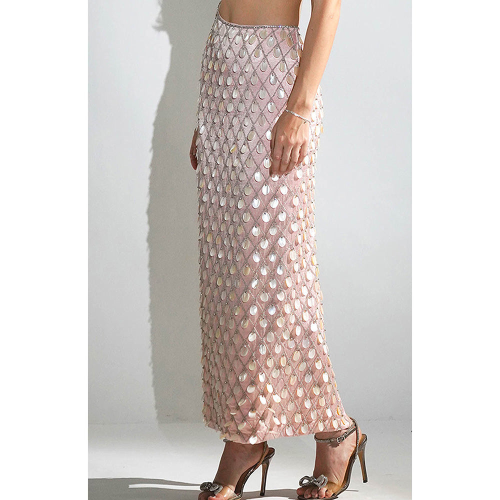 Pink Madeline Salmon Peach Mother Of Pearl Embellished Maxi Dress