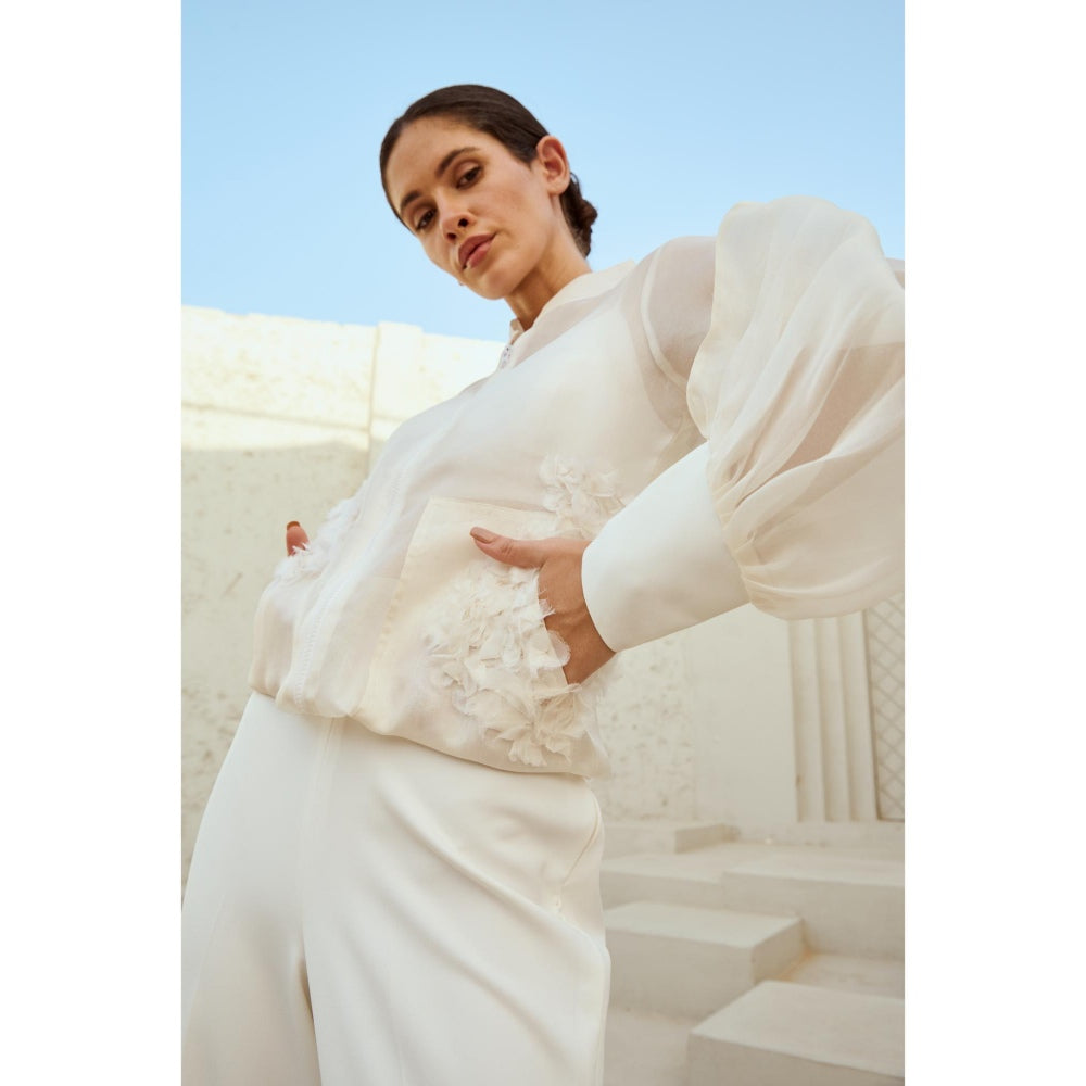 RENASCI Off White Self Design Marshmallow Shrug