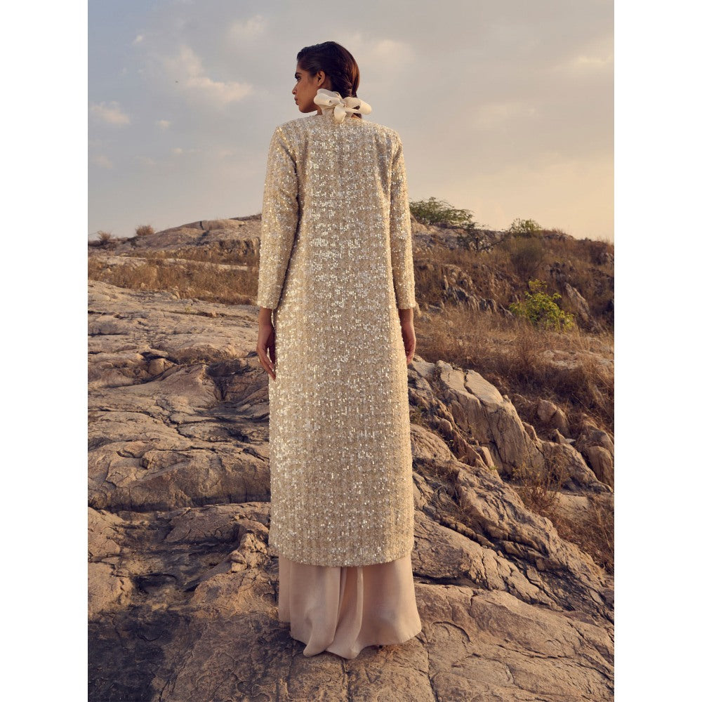 Description : Experience comfort in style with this beige pat, bralette, jacket from RENASCI. Made from high-quality cotton. It features full sleeves, a embellished & sequined pattern, finished with a mid waist rise style. Style it with minimal jewellery ad sadals to complete the ensemble.