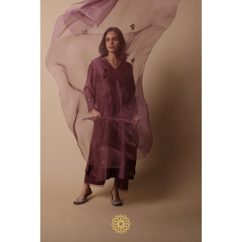 Afsa-Mauve Straight Kurta with Palazzo and Dupatta (Set of 3)