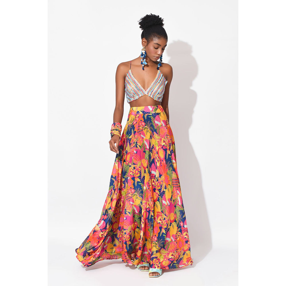 Rishi & Vibhuti Multi-Colour Electric Dream Top With Skirt And Dupatta (Set of 3)