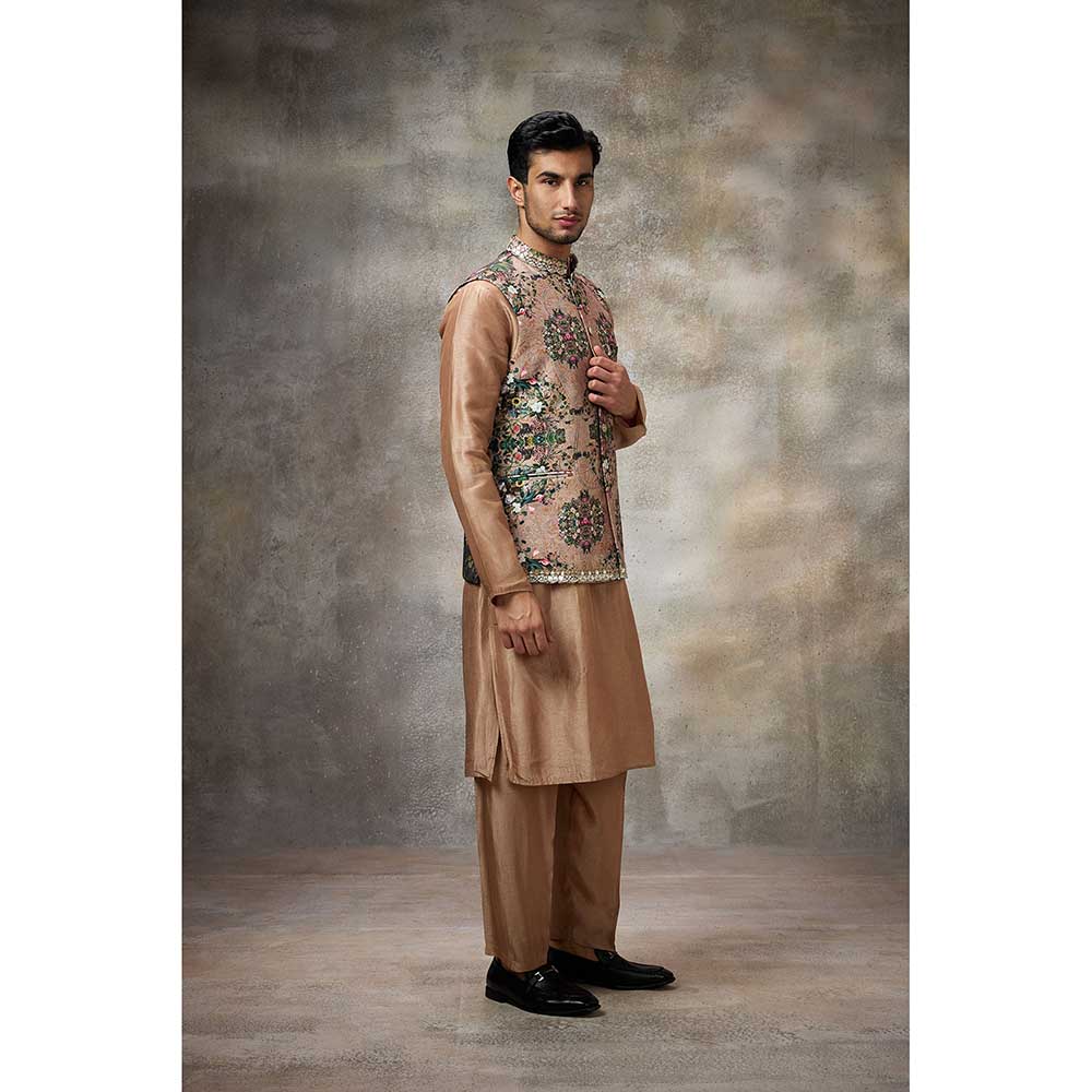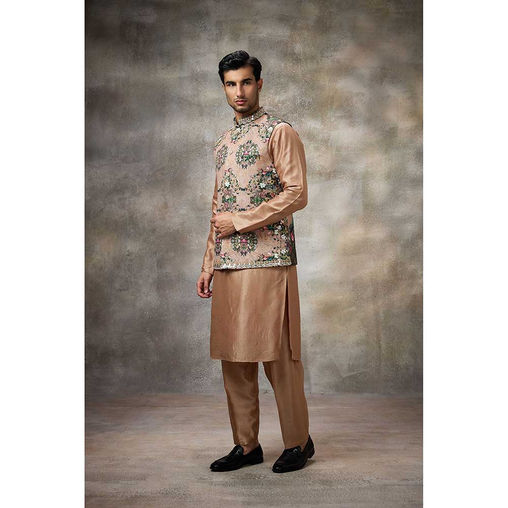 Rivaar by Rocky Star Beige Floral Kurta with Pant and Nehru Jacket (Set of 3)