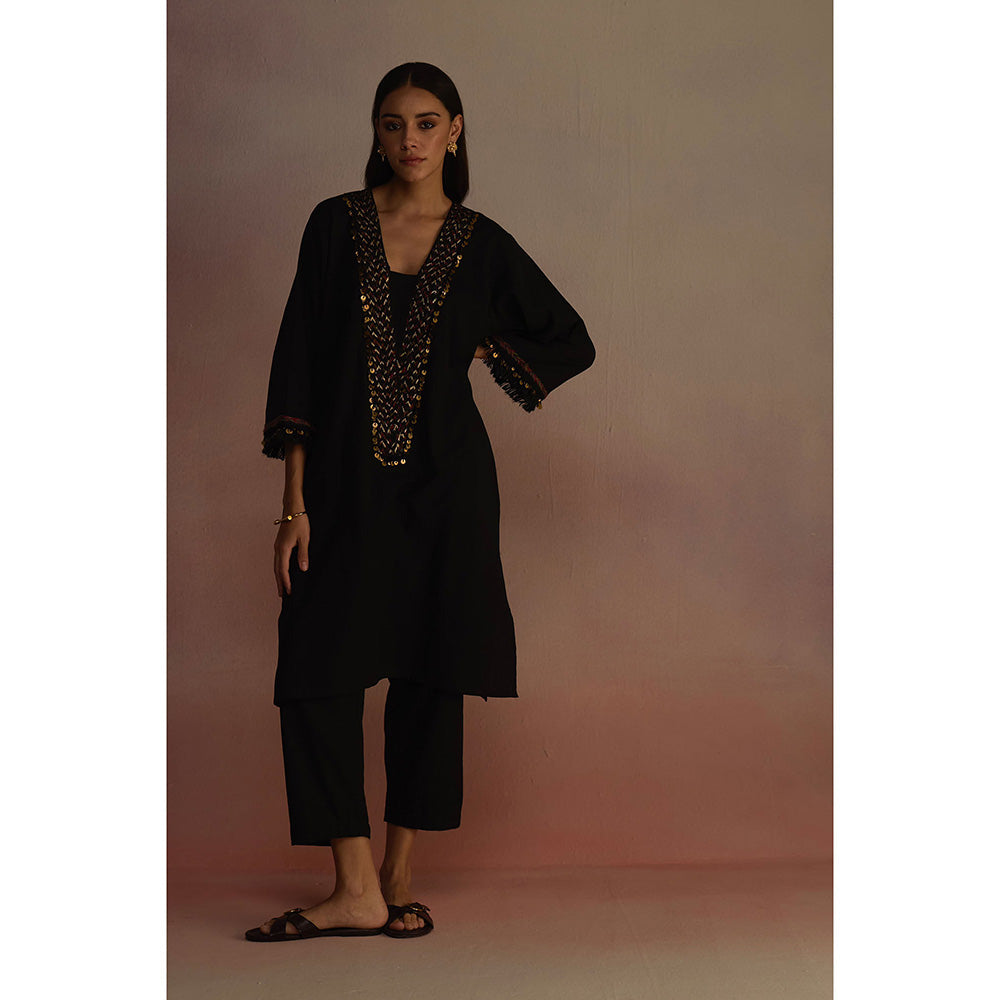 Roza Black Neroli Embroidered Kurta with Pant (Set of 2)