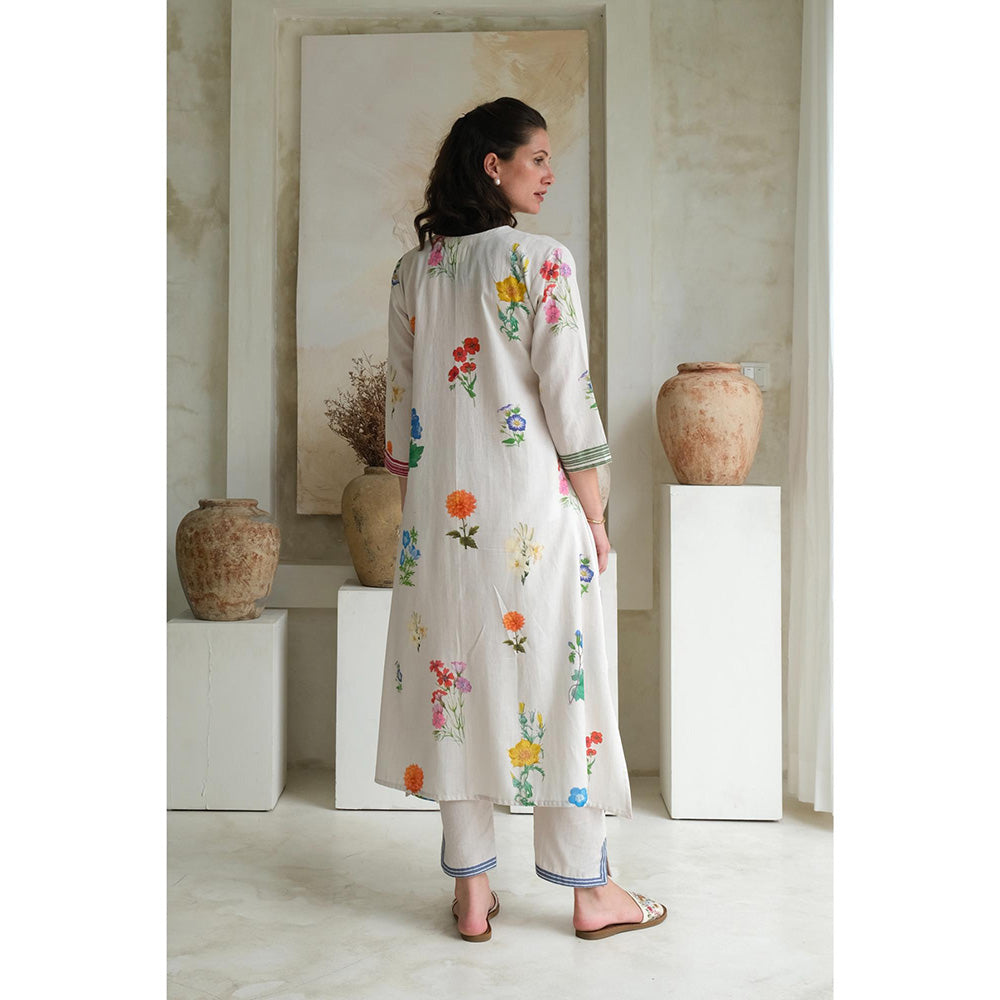 Roza Pret White Printed Marigold Kurta with Pant (Set of 2)