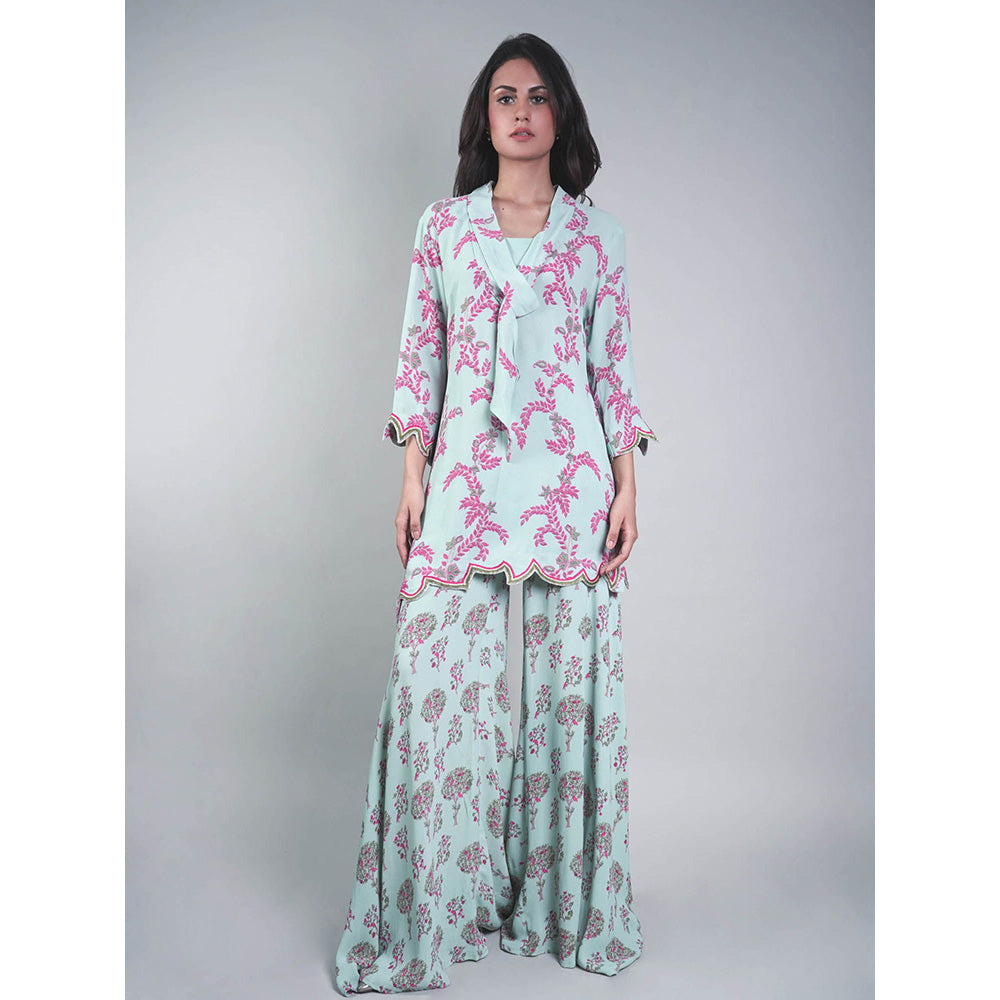 Rukinder Kumar Green Floral Yard Print Short Kurta with Sharara (Set of 2)