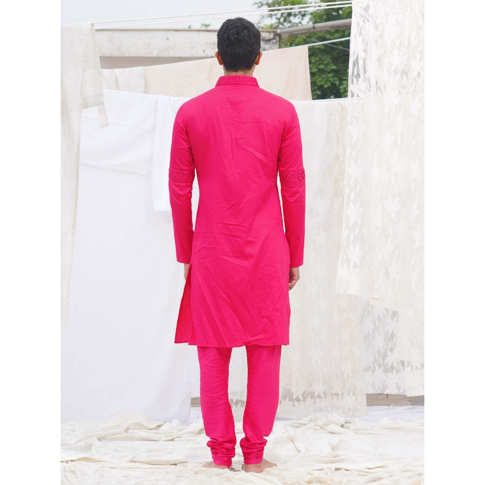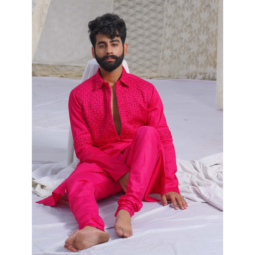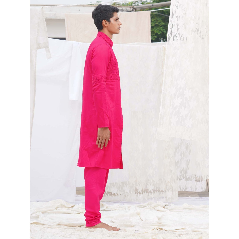 Description : Kurtas are always on the top when it comes to ethnic wear. Runit Gupta's pink kurta set is a perfect choice for an Indian look in you that comes in a smocking pattern. These kurta and bottoms are hand dyed and have a perfect finishing. Style this set with a pair of shoes to complete the look.