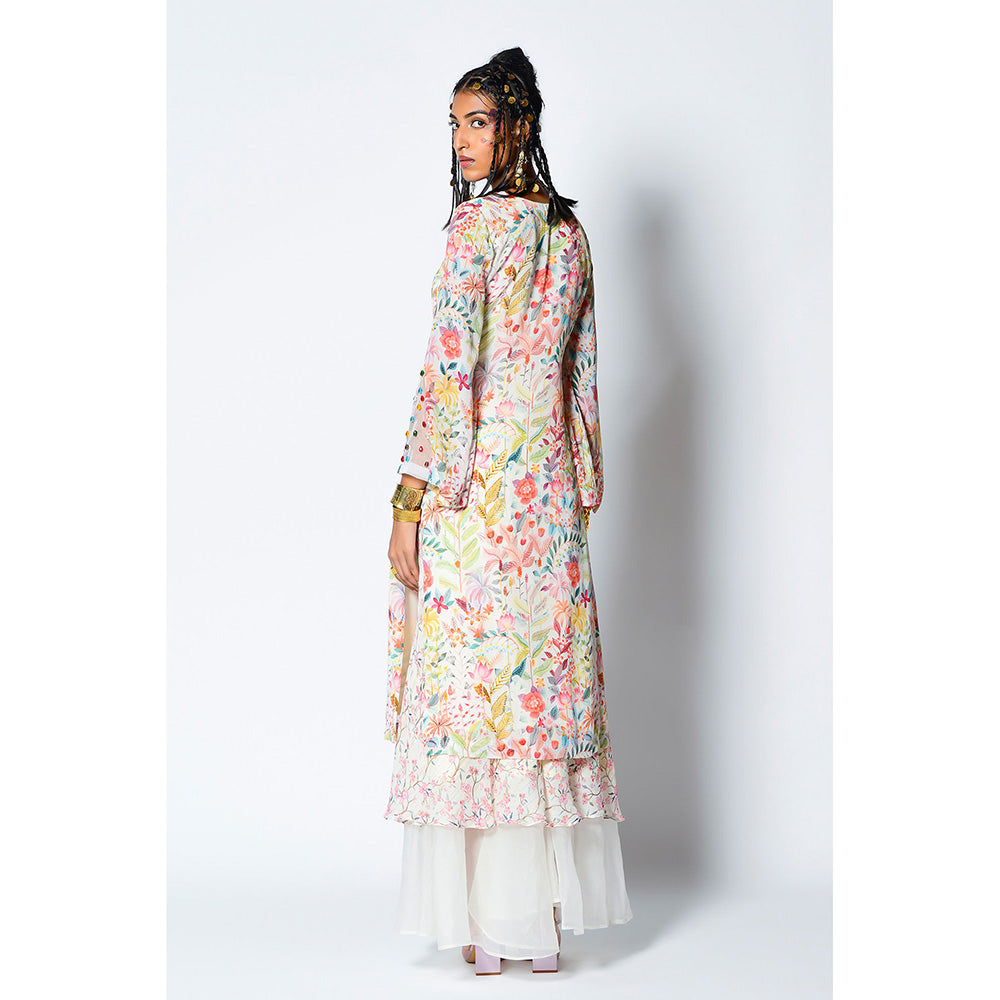 V Neckline Crepe Kurta Organza Palazzo (Set of 2)