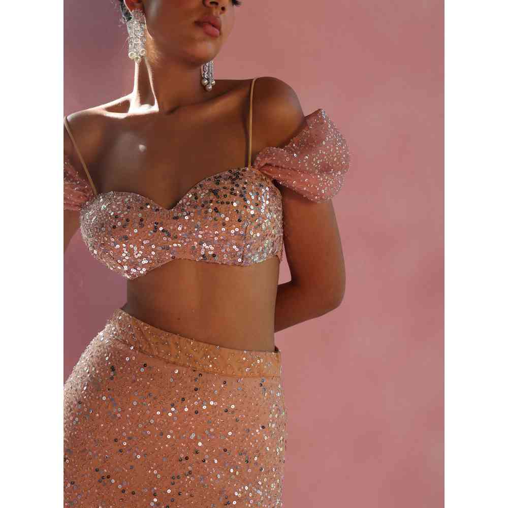 Saanjh by Lea Tazmeen And Shazana Hand Embellished Ombre Lehenga Set (Set of 2)
