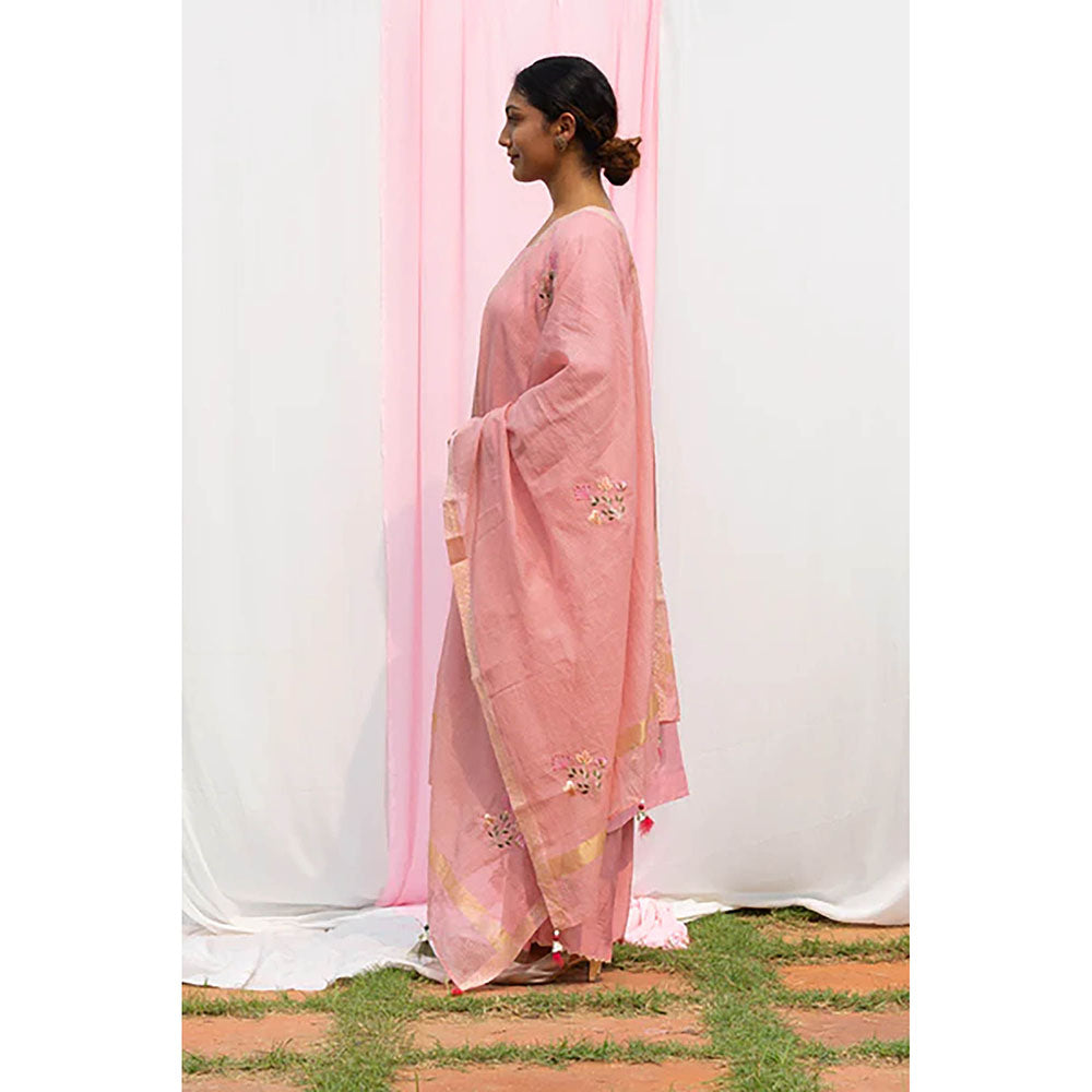 Saatvikei Nidhi - Onion Pink Kurta with Palazzo and Dupatta (Set of 3)