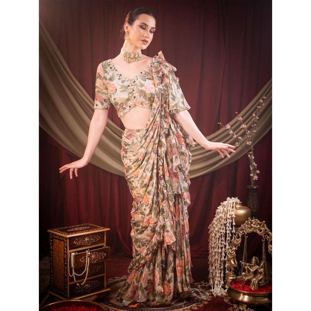 Multi-Colour Nirvana Fusion Pre-Drape Saree with Stitched Blouse