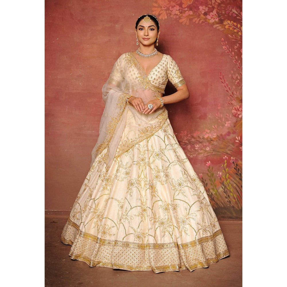 Sanjana Thakur Ivory Bridal Lehenga with Blouse and Dupatta (Set of 3)