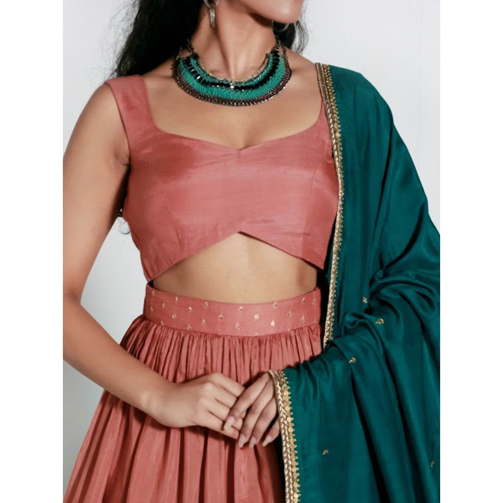 Rust Embroidered Lehenga And Choli With Dupatta (Set of 3)