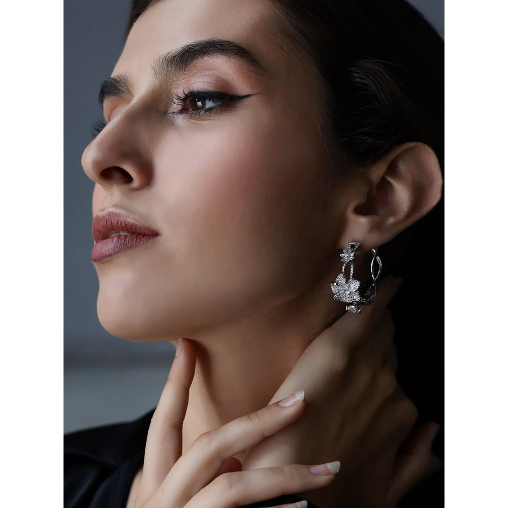 Shaze Moon Flowers Silver Stone Studded Hoop Earrings