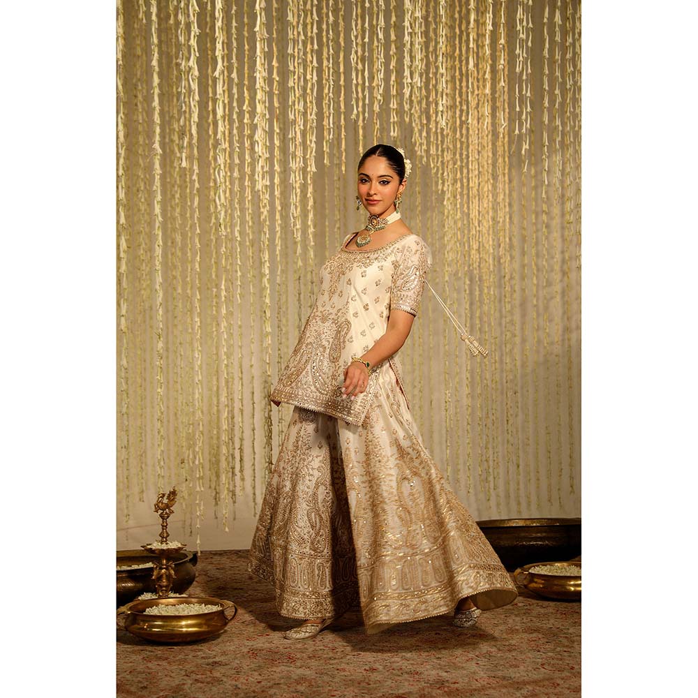 Sheetal Batra Mazneen Kurta & Sharara Pant with Dupatta-Ivory (Set of 3)