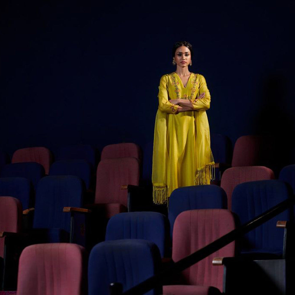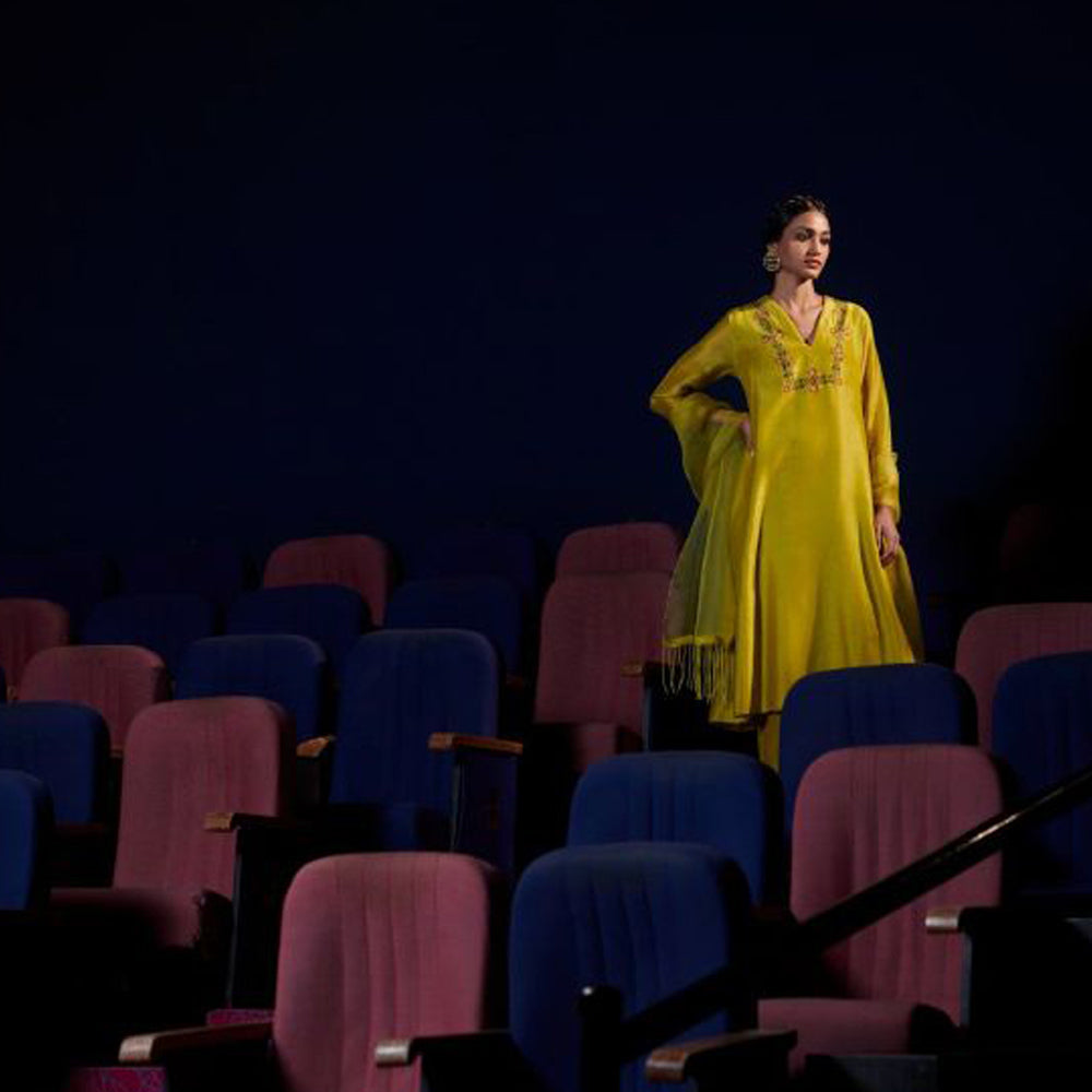 Description : Lime Qeerat Kurta with Pant and Dupatta