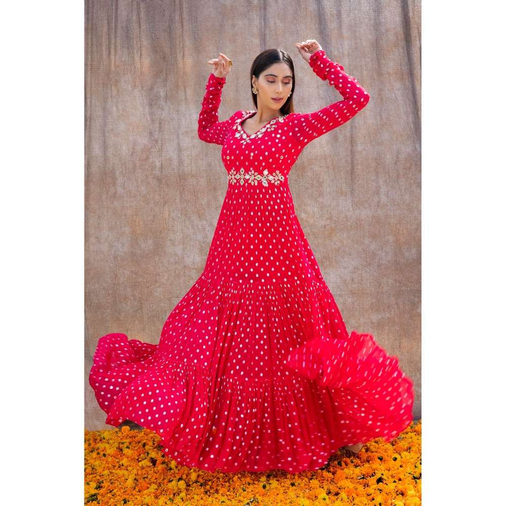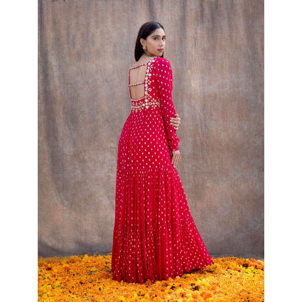 Silky Bindra Back Cut-Out Mirror Work 3-Tiered Anarkali (Set of 2)