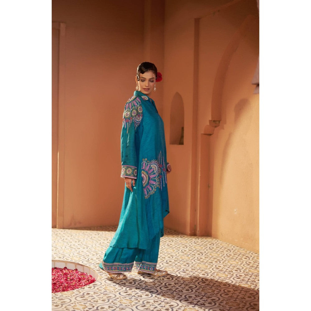 Sonia Khatri Deep Teal Alpana Long Kurta with Palazzo (Set of 2)