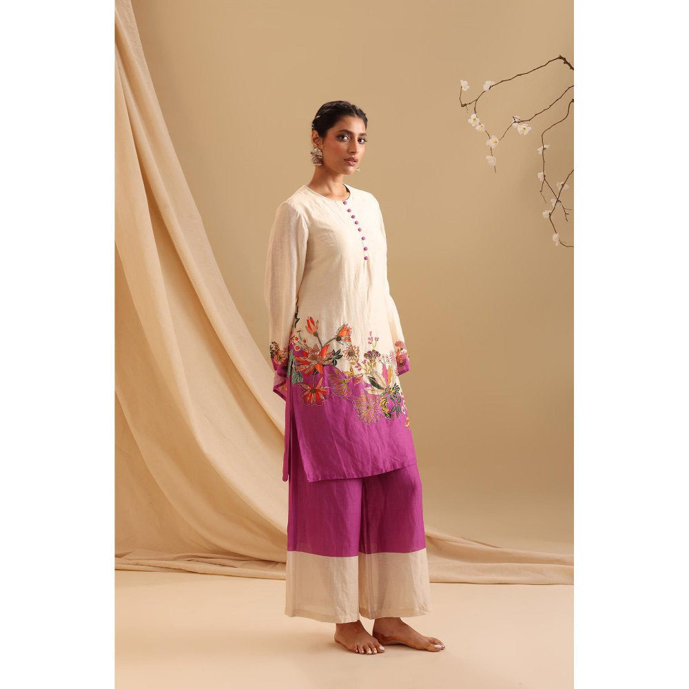 Description : Cream Aarani Embroidered Kurta with Palazzo