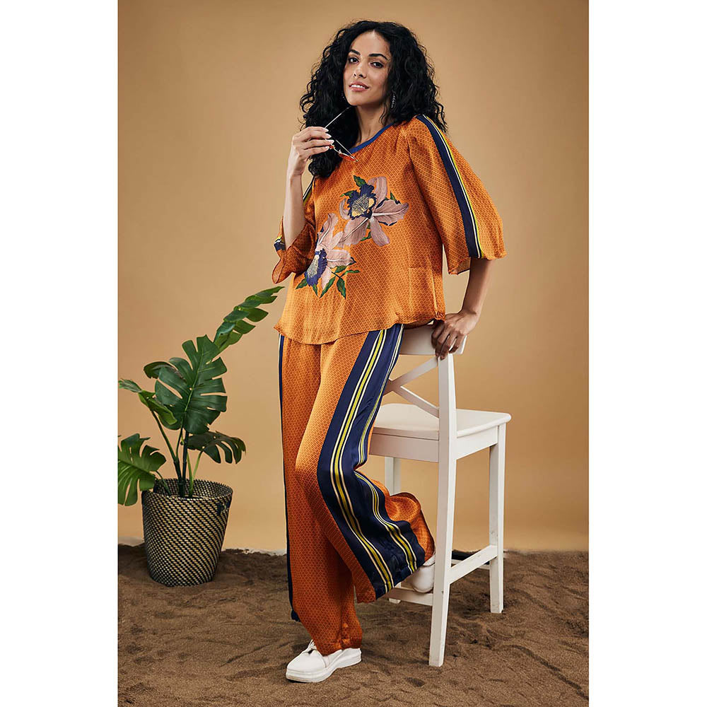 Orange Orchid Bloom Printed Co-ord (Set of 2)