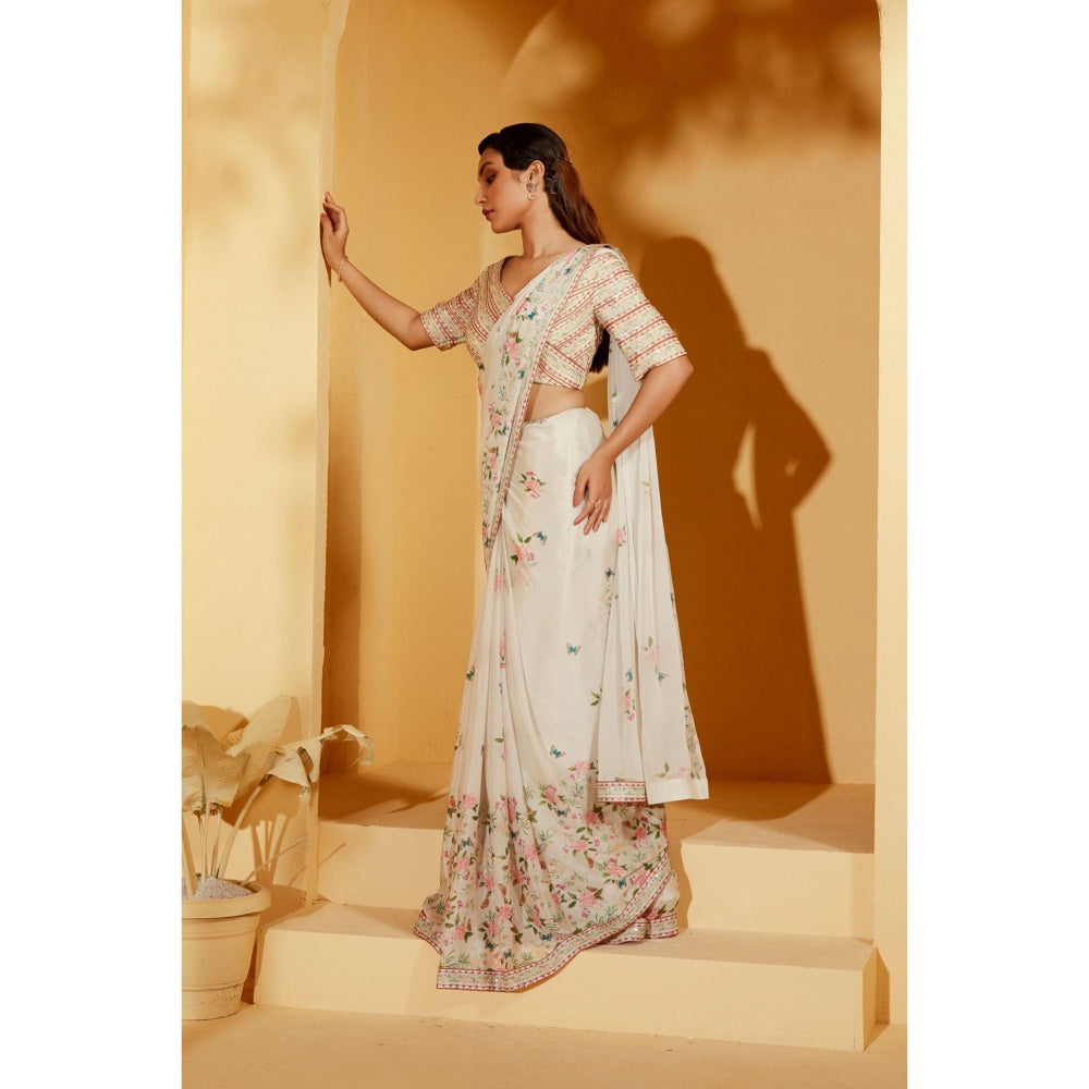 Suruchi Parakh Off White Embellished Pre Drape Saree and Blouse with Stitched