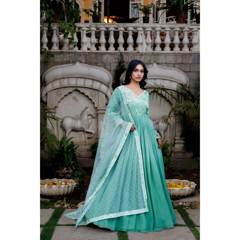 Suruchi Parakh Womens Green Floral Print Anarkali Kurta and Dupatta (Set of 2)