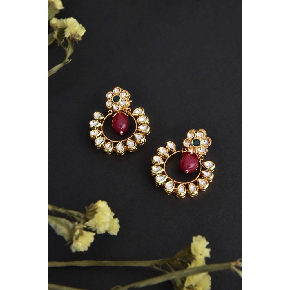 SWABHIMANN Moira Red and Green Kundan Chandbali Earrings
