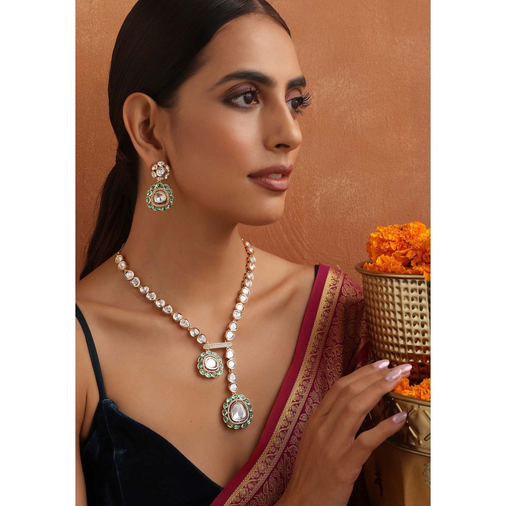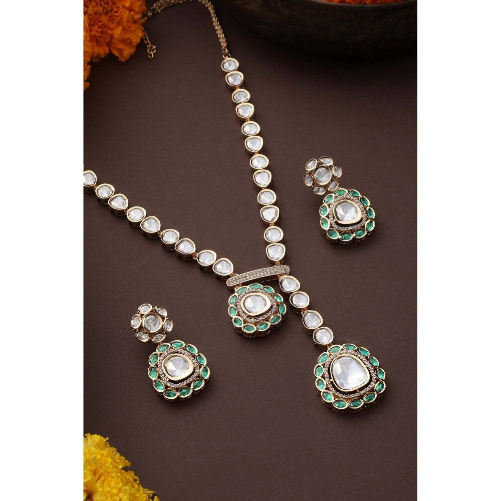 Yaavi Green Polki Necklace with Earrings Set
