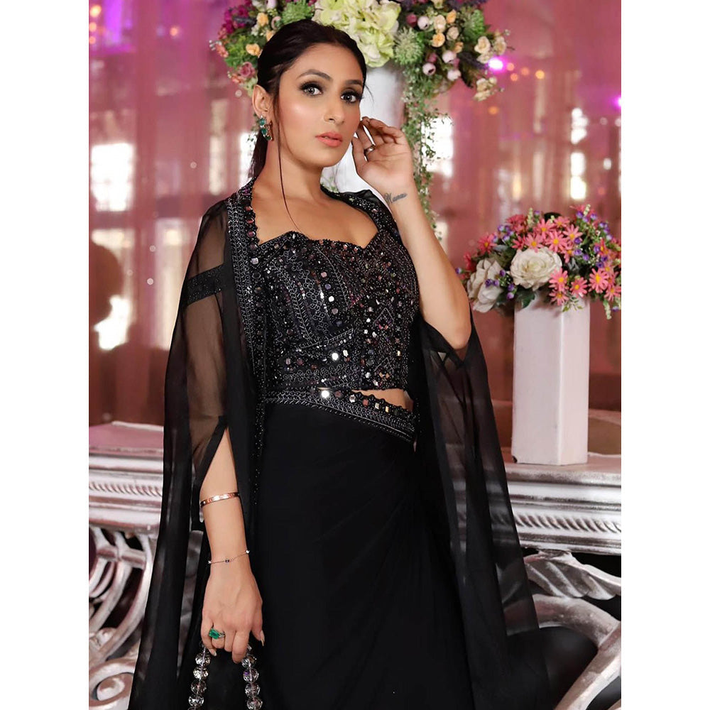 Swati Wadhwani Kaasha Embellished Drape Skirt with Blouse and Jacket (Set of 3)