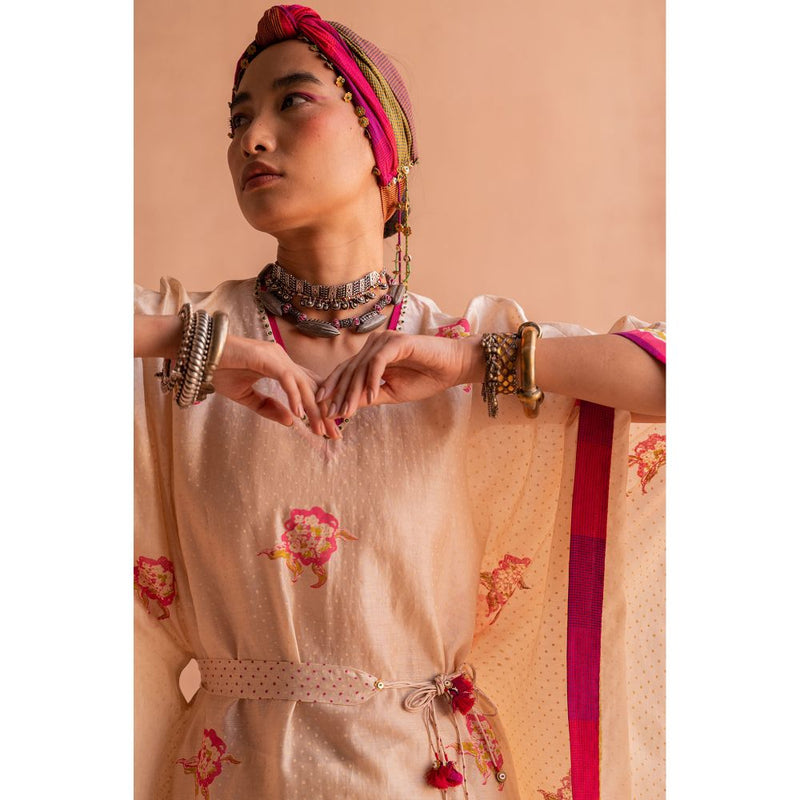 Svet Beige Floral Printed Kaftan Dress