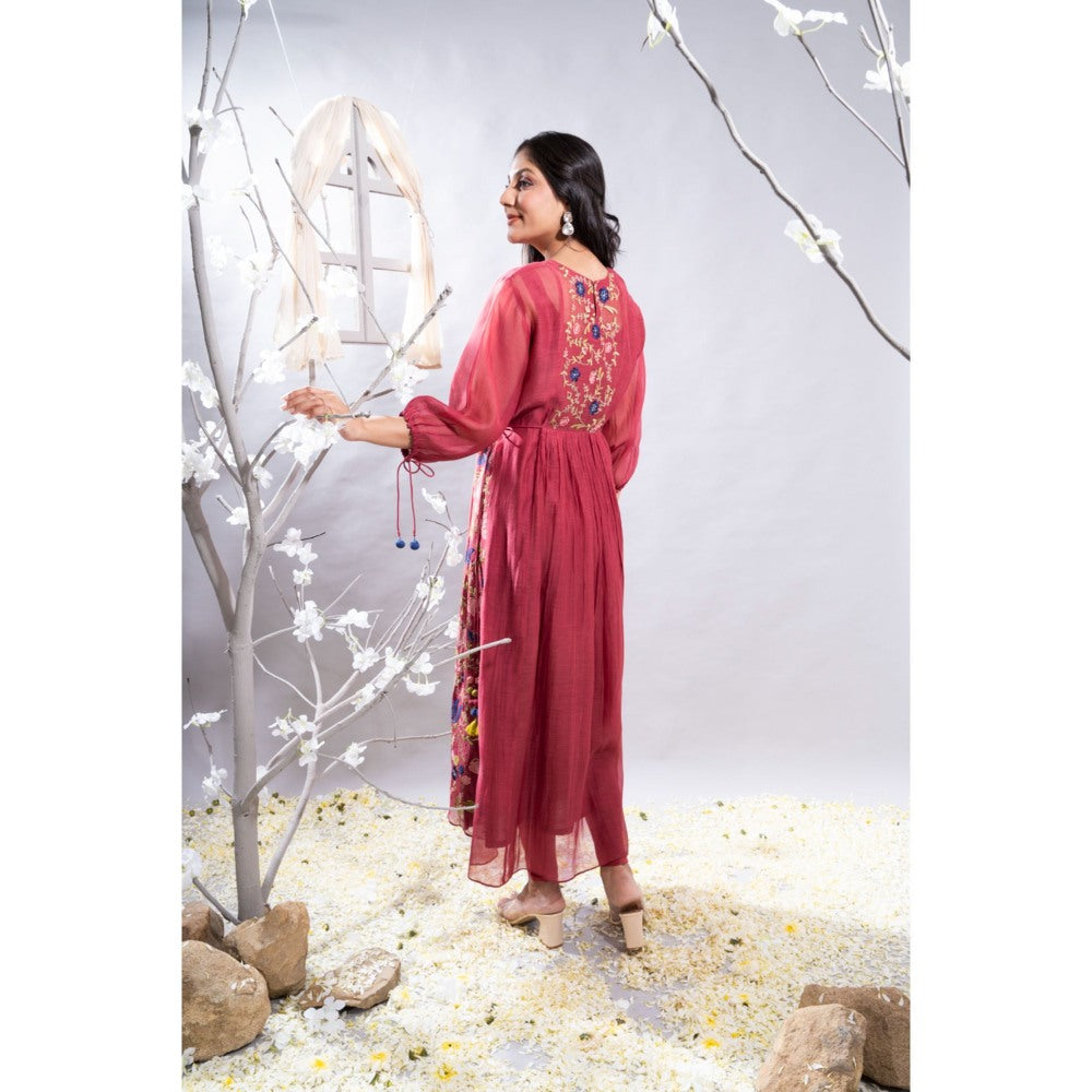 The White Tree Studio Farheen Maroon Applique On Panel Kurta with Pant & Inner (Set of 3)