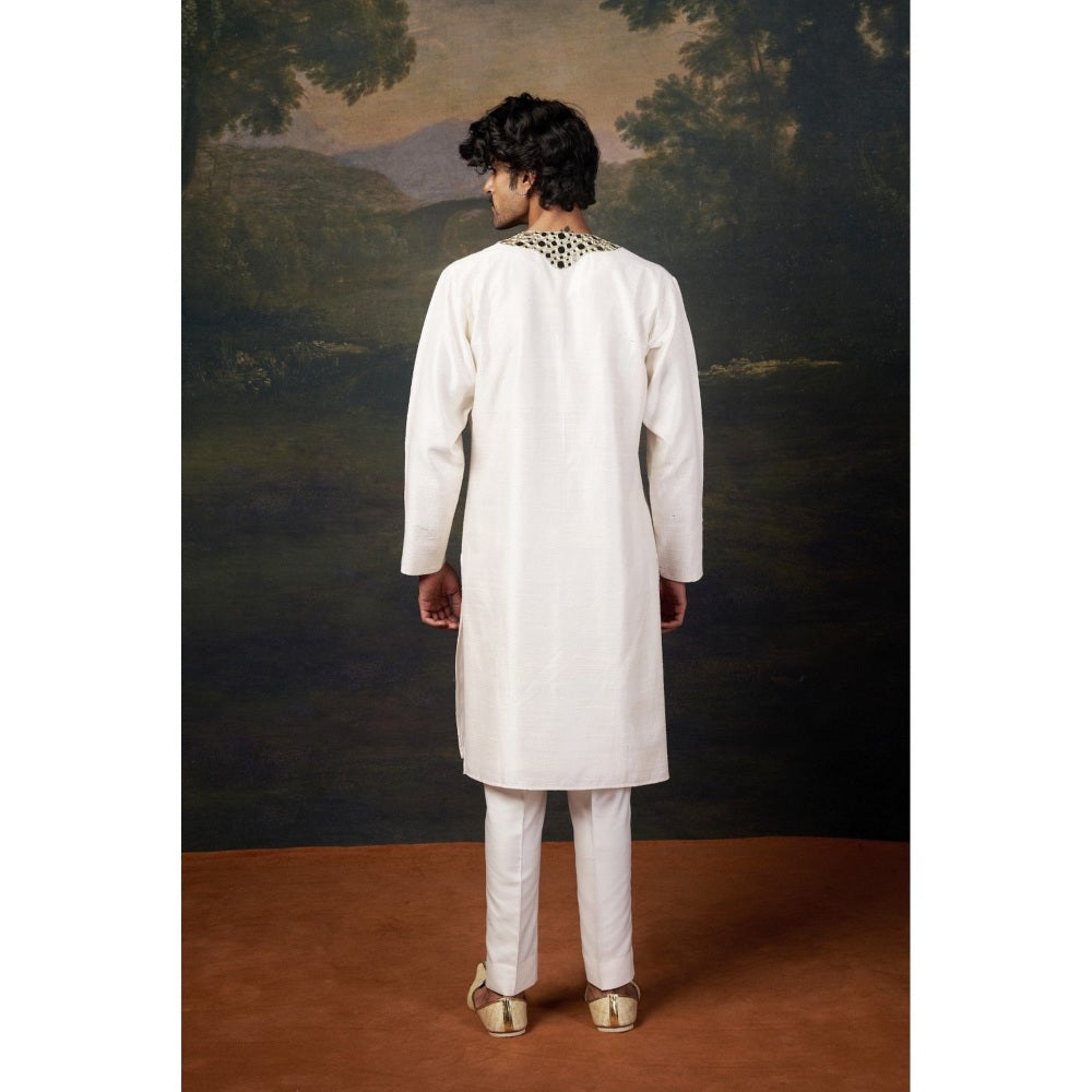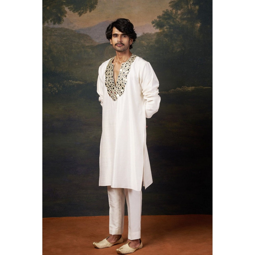 THETAA Men White Mirror Work Kurta with Pyjama
