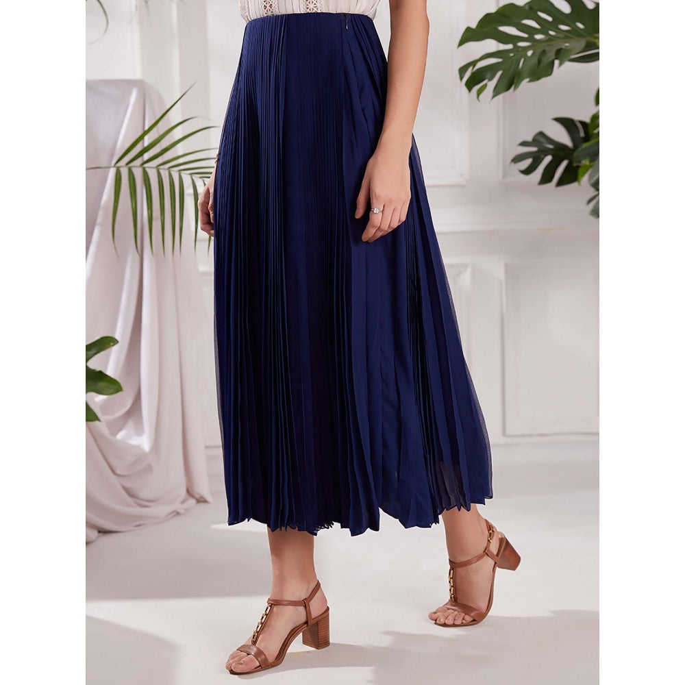 Description : This Hand-Pleated Blue Georgette Skirt Is Designed To Make A Statement With Its 8 Meters Of Luxurious Flare, Creating A Stunning, Flowy Silhouette. The Vibrant Colour Enhances Its Elegance, While The Lightweight, Breathable Fabric Ensures Comfort And Effortless Movement. Perfect For Special Occasions, Evening Events, Or Festive Celebrations, This Skirt Pairs Beautifully With Fitted Tops, Corsets, Or Elegant Blouses, Offering A Timeless And Sophisticated Look.