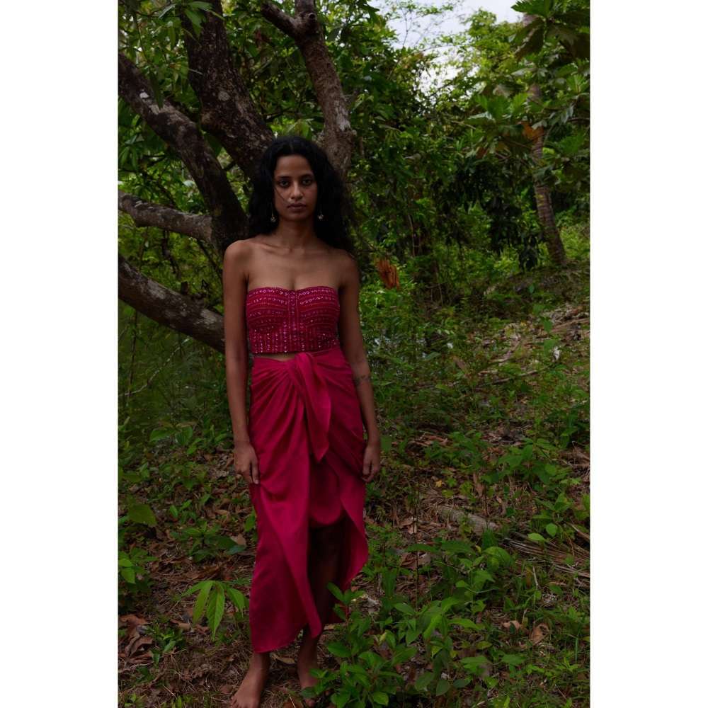 Description : Hand-Embroidered Corset With Sarong Wrap- Skirt
