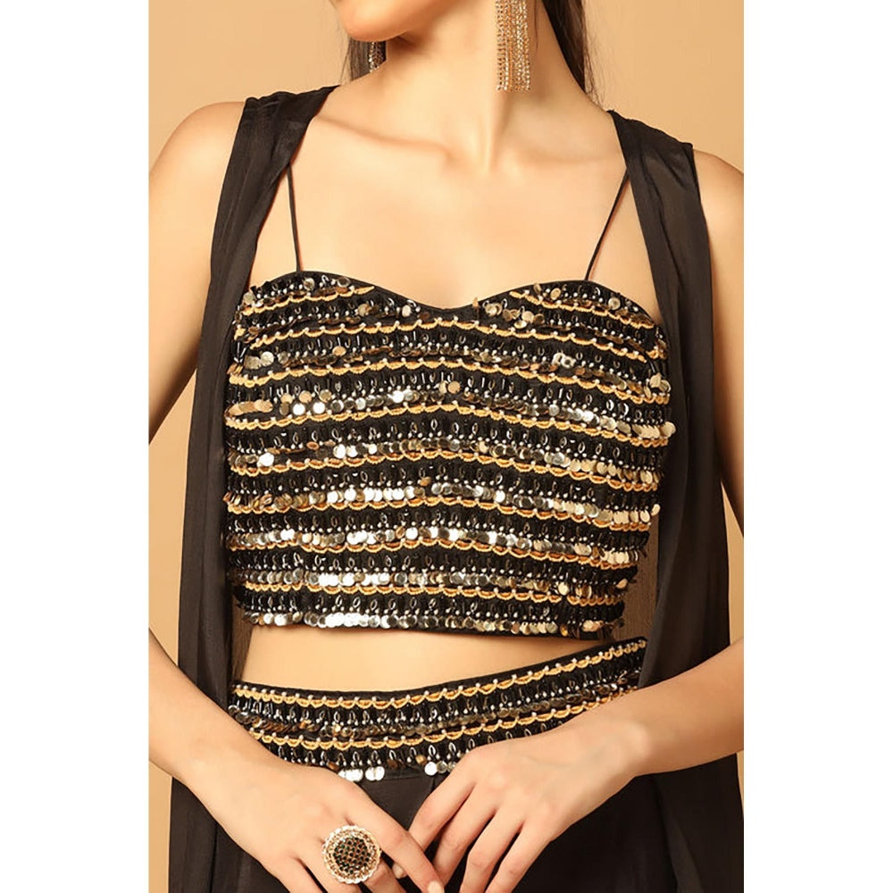 "Two Sisters" by Gyans Black Chiffon Embroidered Sleeveless Skirt With Bustier And Cape
