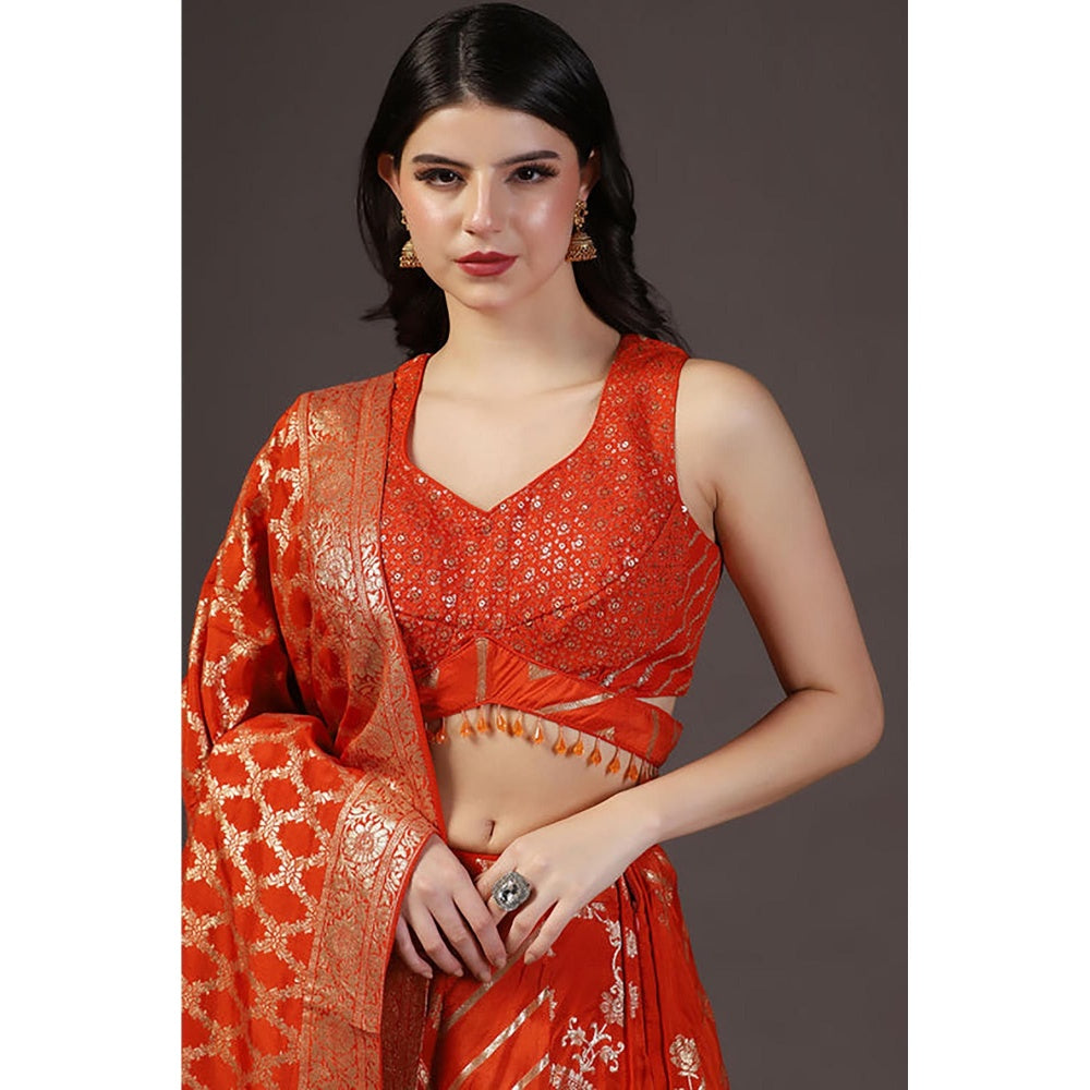 Burnt Orange Sequins Embroidered Banarasi Silk Lehenga Sets 0F 3