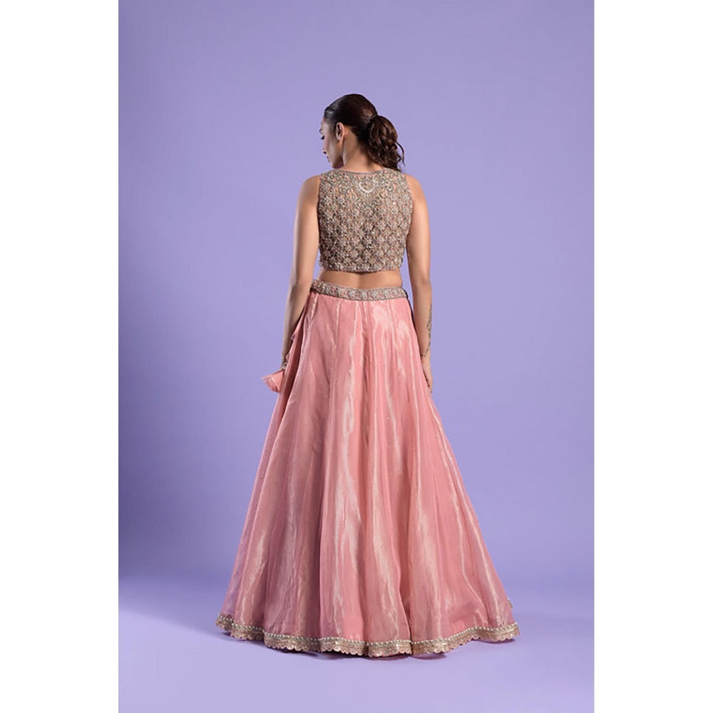 "Two Sisters" by Gyans Pink Zardozi And Woven Tissue Lehenga Set