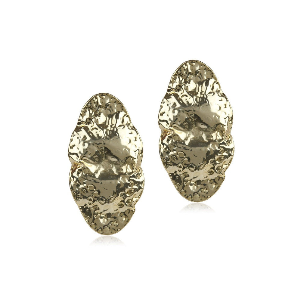 Valliyan Metal Crush Hoops Oval Gold Earring