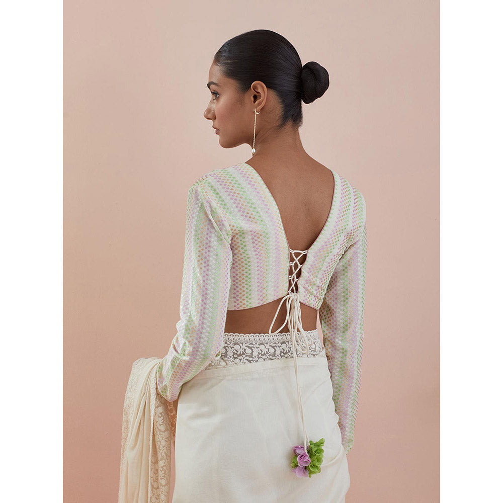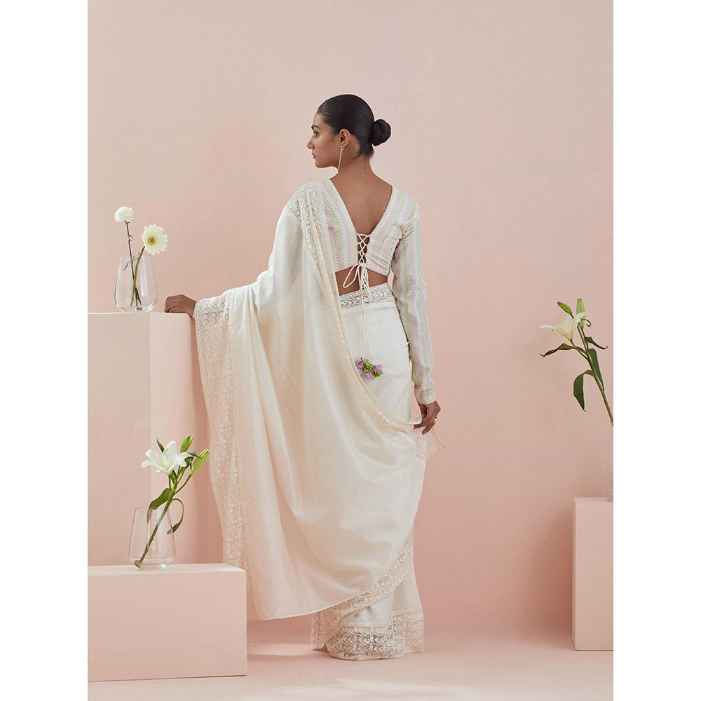 White Chanderi Textured Cotton Saree with Stitched Blouse