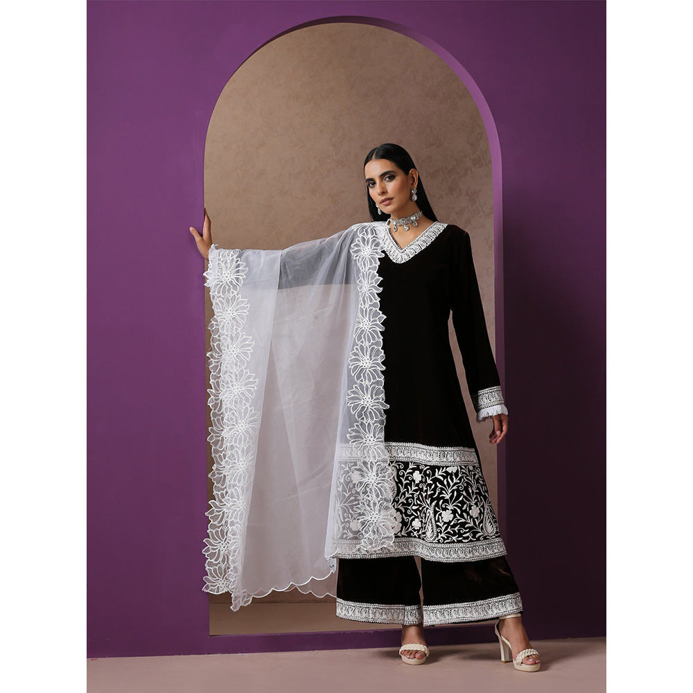 Brown And White Kurta with Flared Pant & Dupatta (Set of 3)