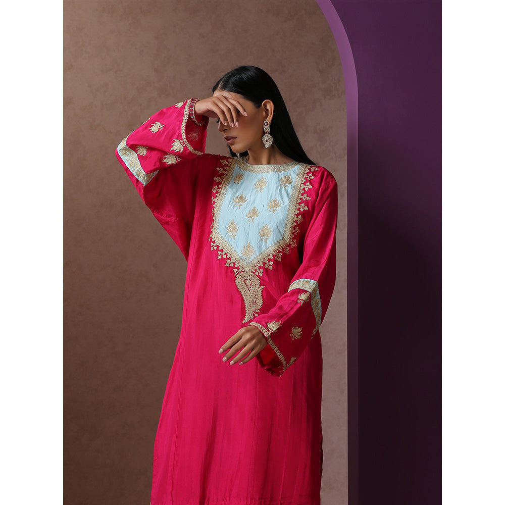 Hotpink And Blue Kurta with Pant (Set of 2)