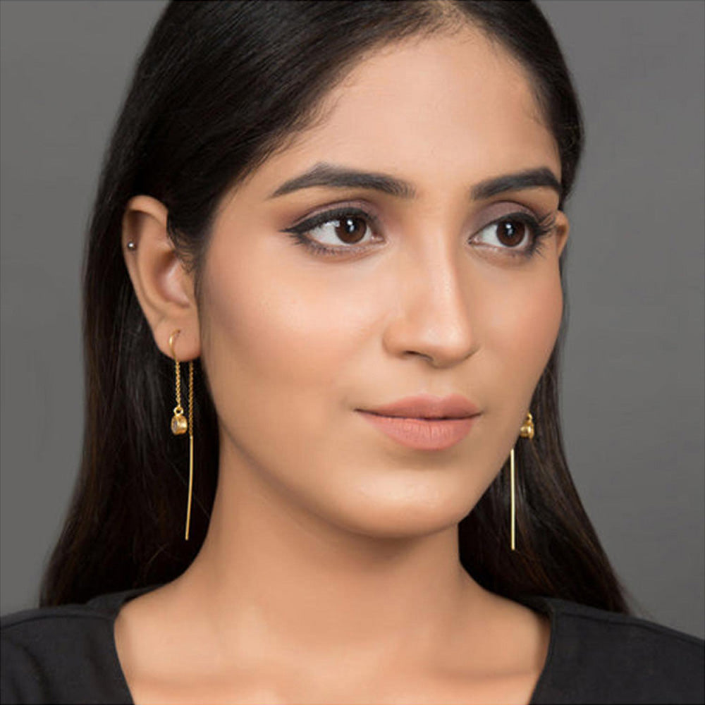 Description : Rose quartz andamp; rose all day is every woman's dream come true. This piece is graceful, delicate and adds romance to your outfit. The details are inspired by the intricacies of the nature. The 22kt gold-plated earrings are accompanied by the raw, uncut rose quartz gemstones to celebrate beauty in imperfections. Rose quartz stands for self-love, compassion and being open to experiences. Wear these on date night or a brunch with your girlfrields to set a subtle statement. The needle and thread style makes them a timeless addition to your jewellery wardrobe.