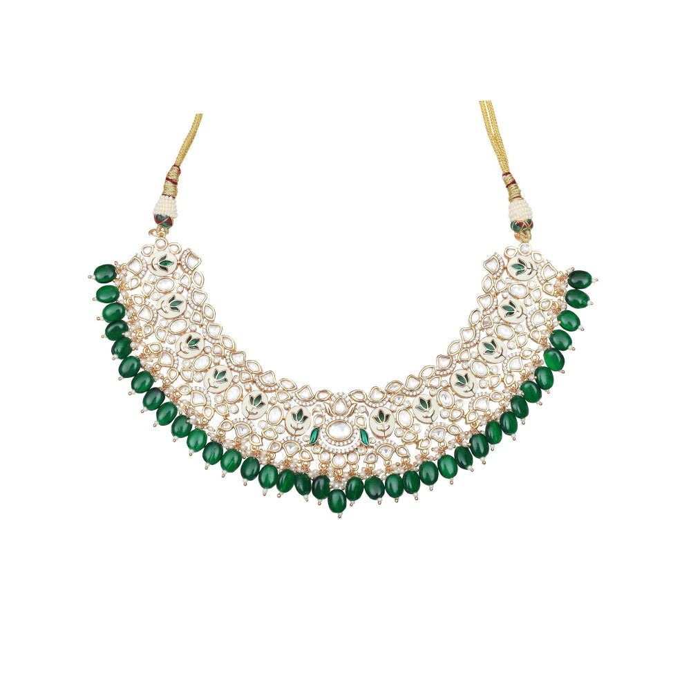 Akulya Jewels Emerald Green Minakari Kundan Choker (Set of 3)
